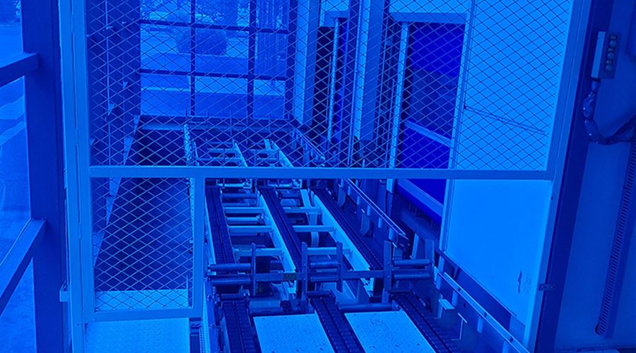 通过物流输送系统,将1楼的货物分别输送至2楼或3楼VD室内,供室内生产使用。该套系统包含LIFT输送机,高空物流线、地面高位物流线、旋转物流线、高空平台RGV有轨小车、升降物流线、牙叉移栽设备、空栈板堆层升降机、快速卷帘门及配套的安全防护设备。