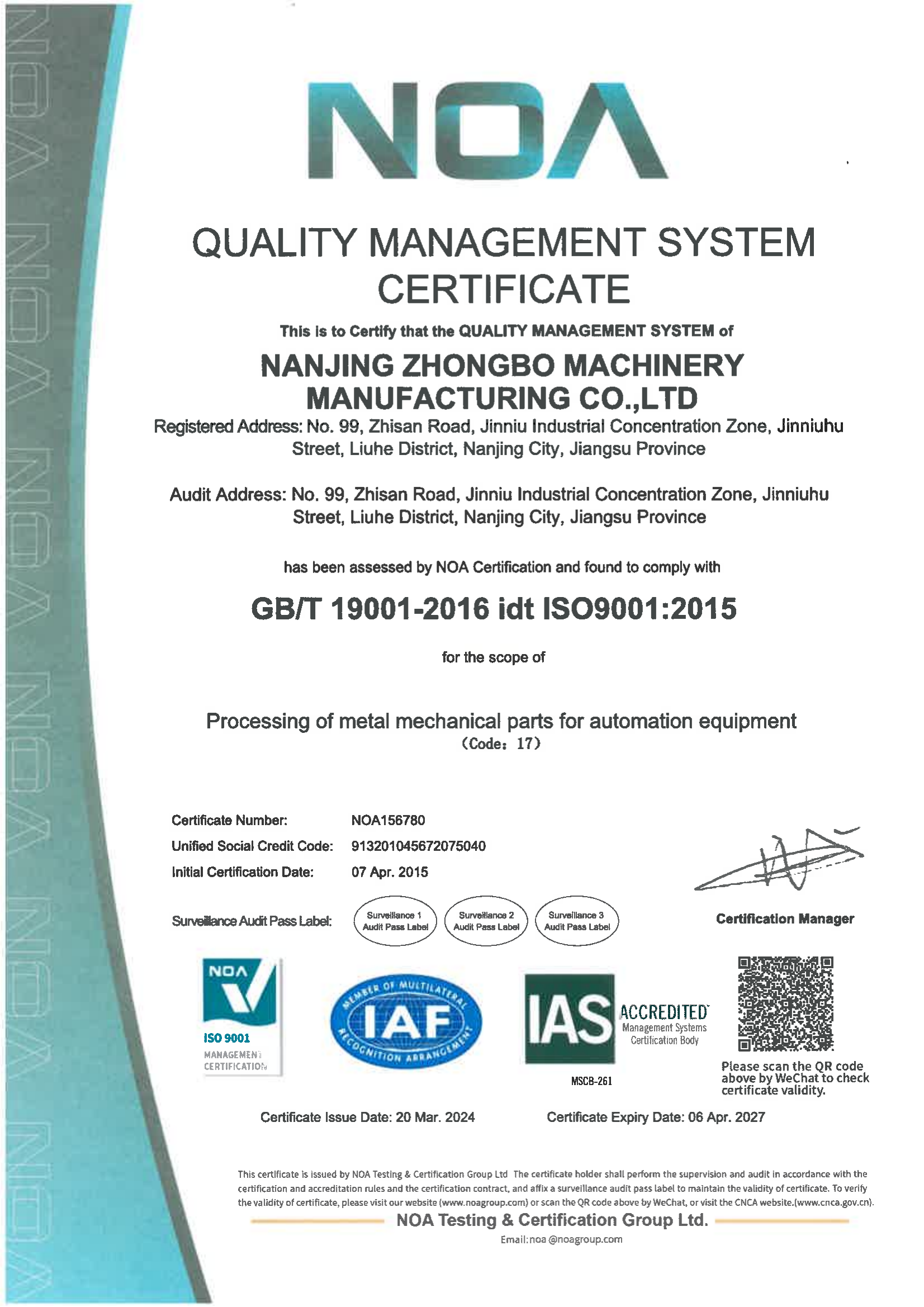 Weapon and Equipment Quality Management System Certificat