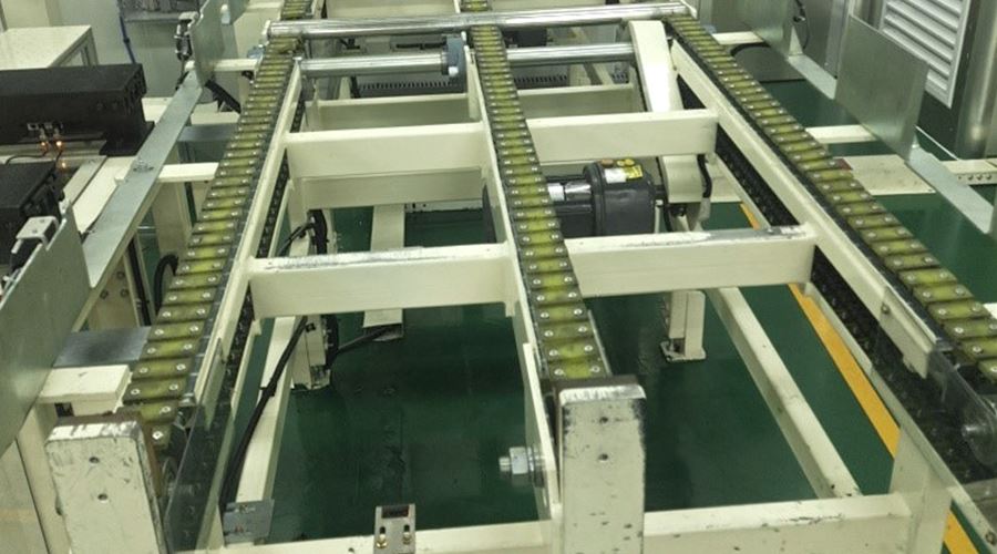 链条输送线也可称为链条线。链条输送线是以链条作为牵引和承载体进行输途物料的设备,链条可以朵用普通的套筒滚子输送链,也可朵用其它各种特种链条(如积放链,倍速链)。链条输送线主要输送托盘、大型周转箱等。